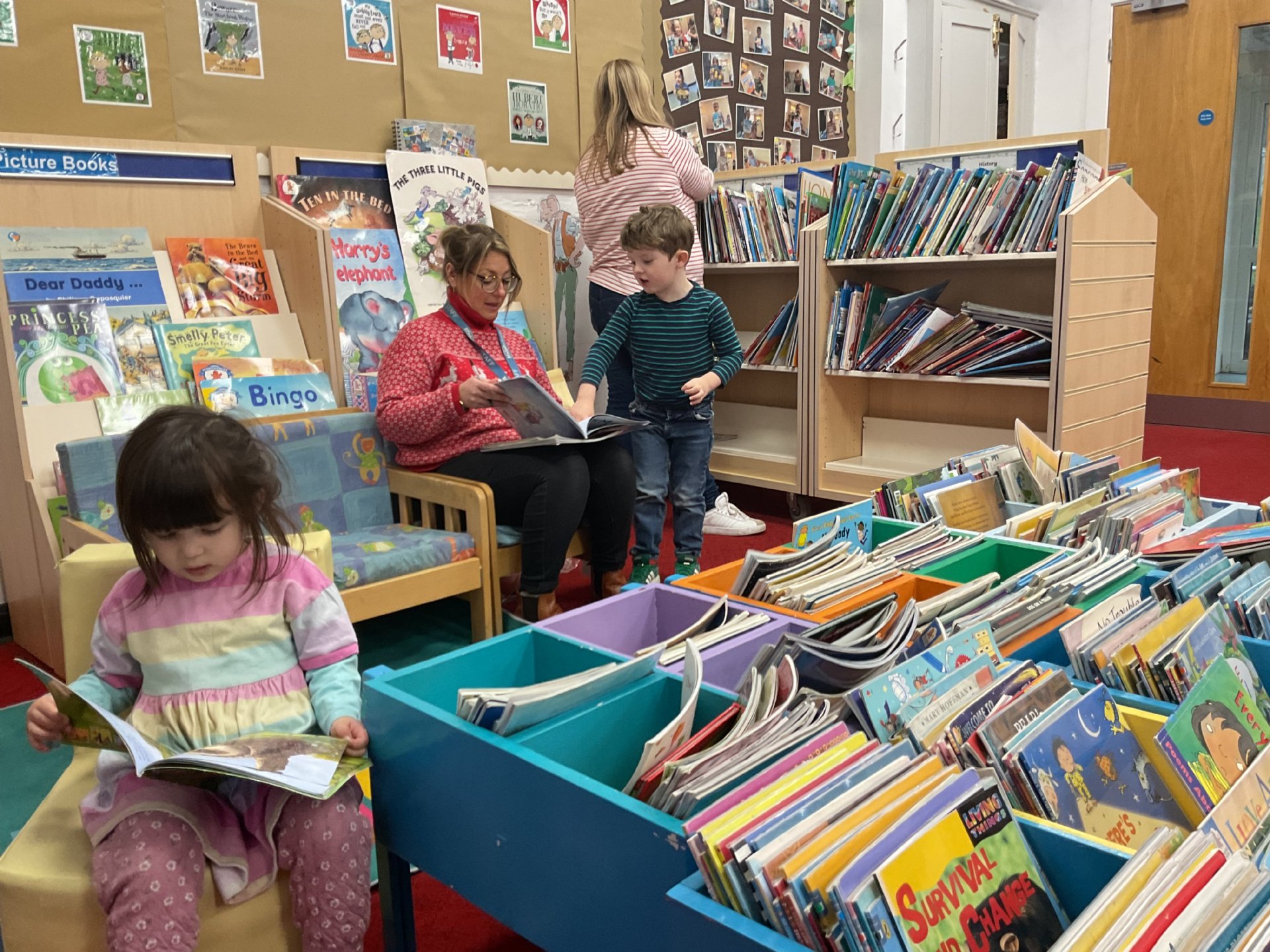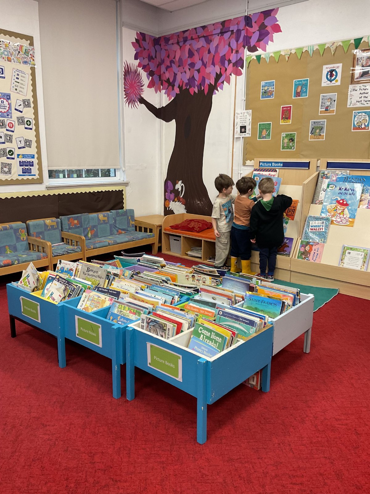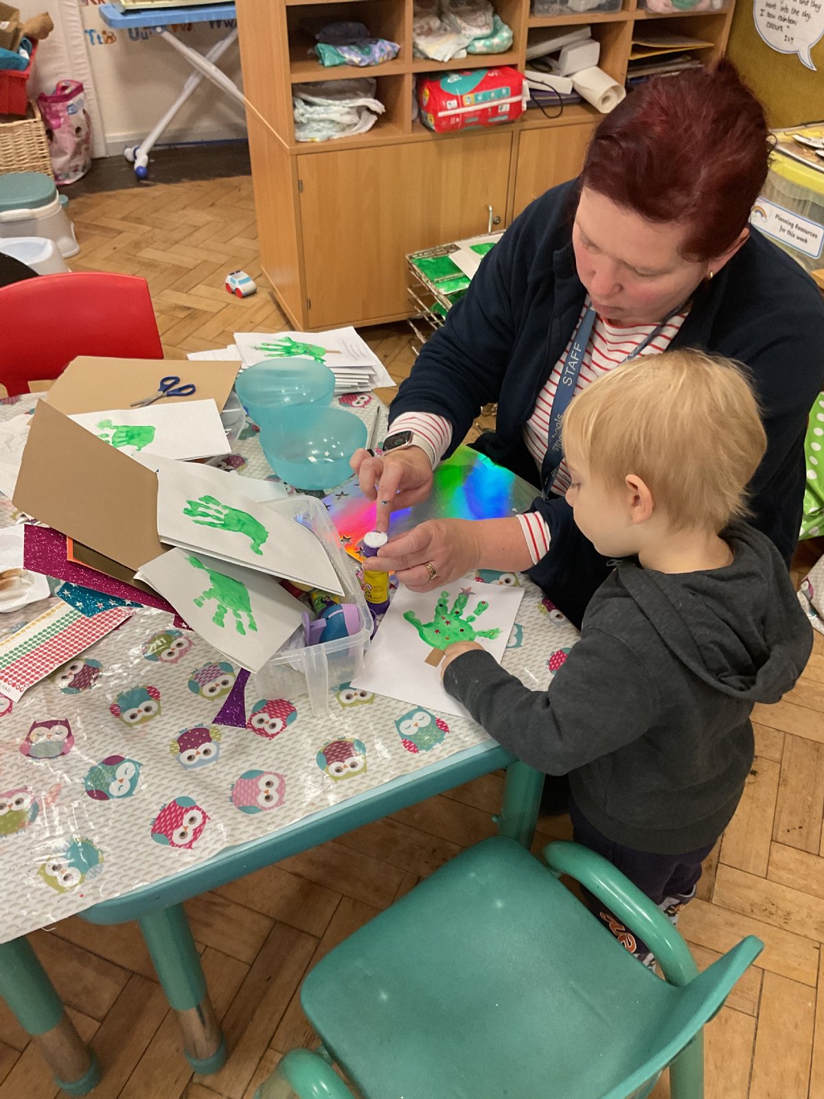 Using Christmas tree hand prints we made some lovely cards for our families. We had fun on a Christmas decoration hunt around the school and picked out some lovely Christmas story books from the library.