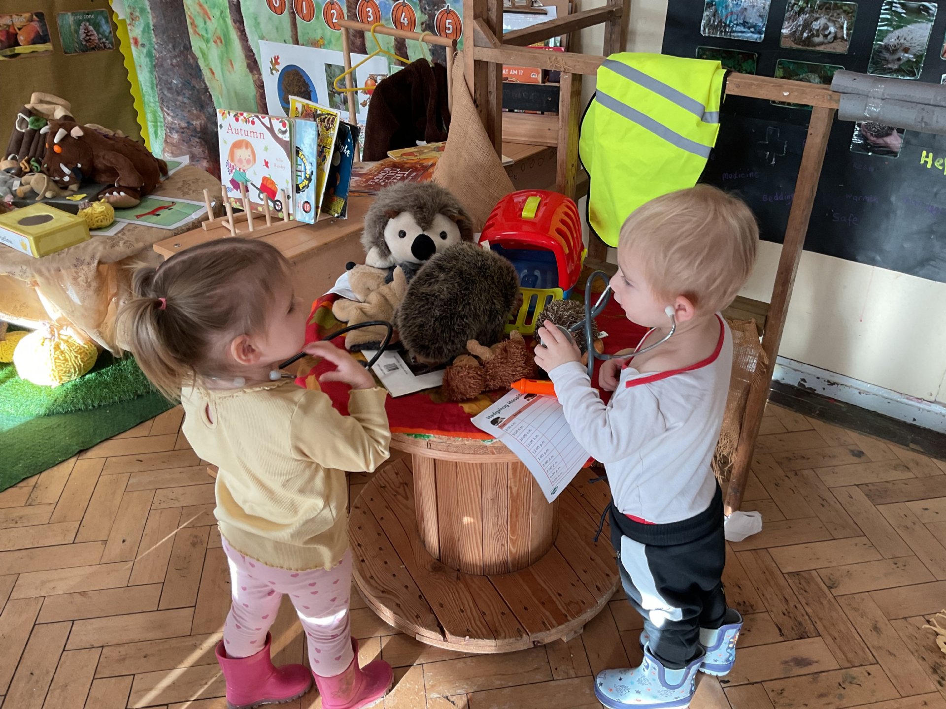 Our role play are has been transformed into a 'hedgehog hospital' as we have been learning about hedgehogs and hibernation.