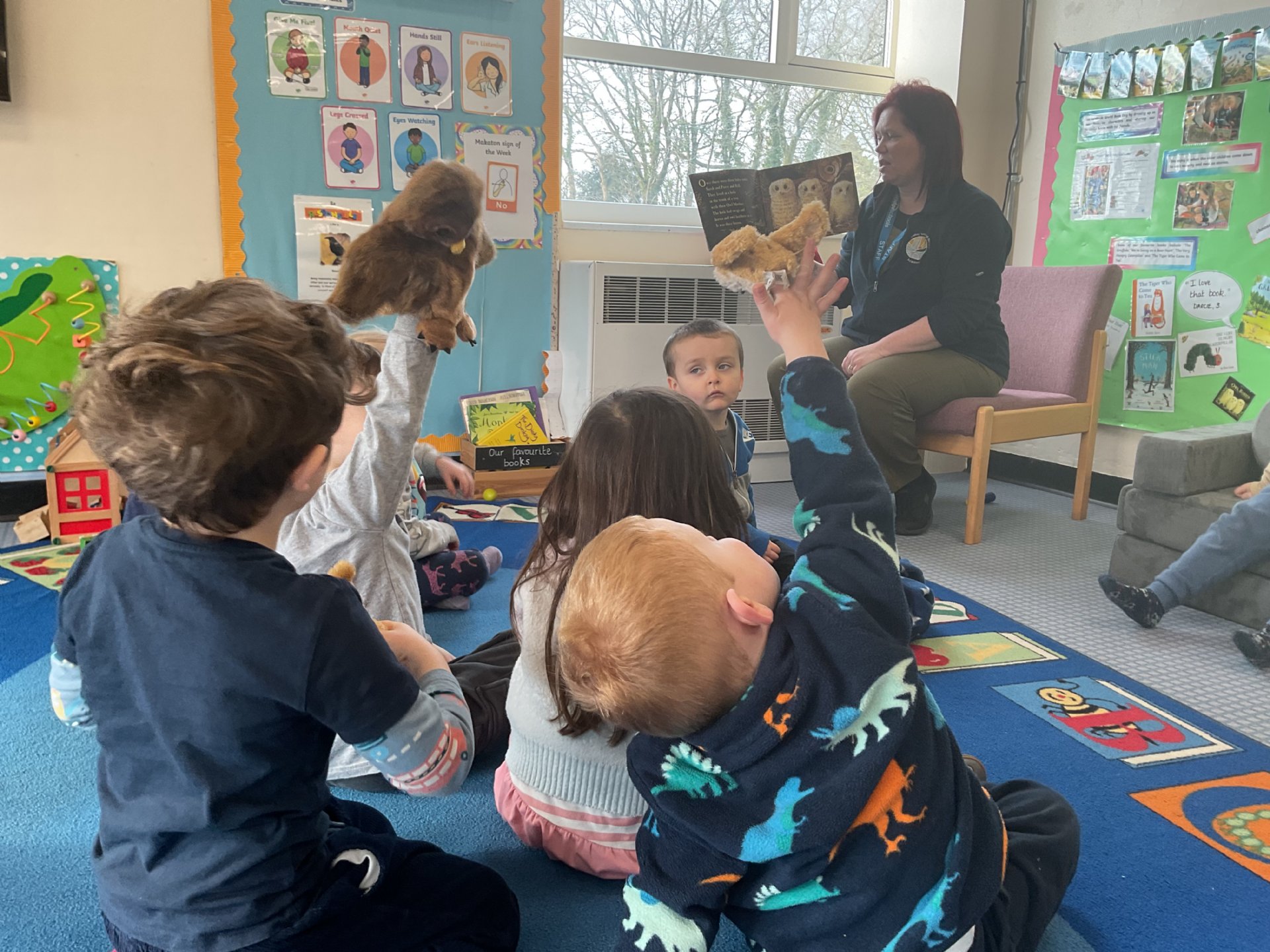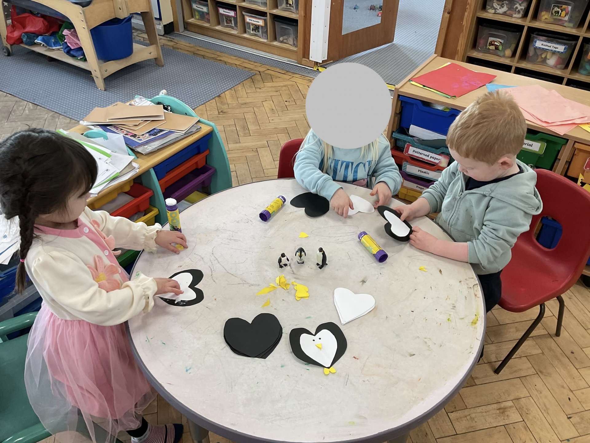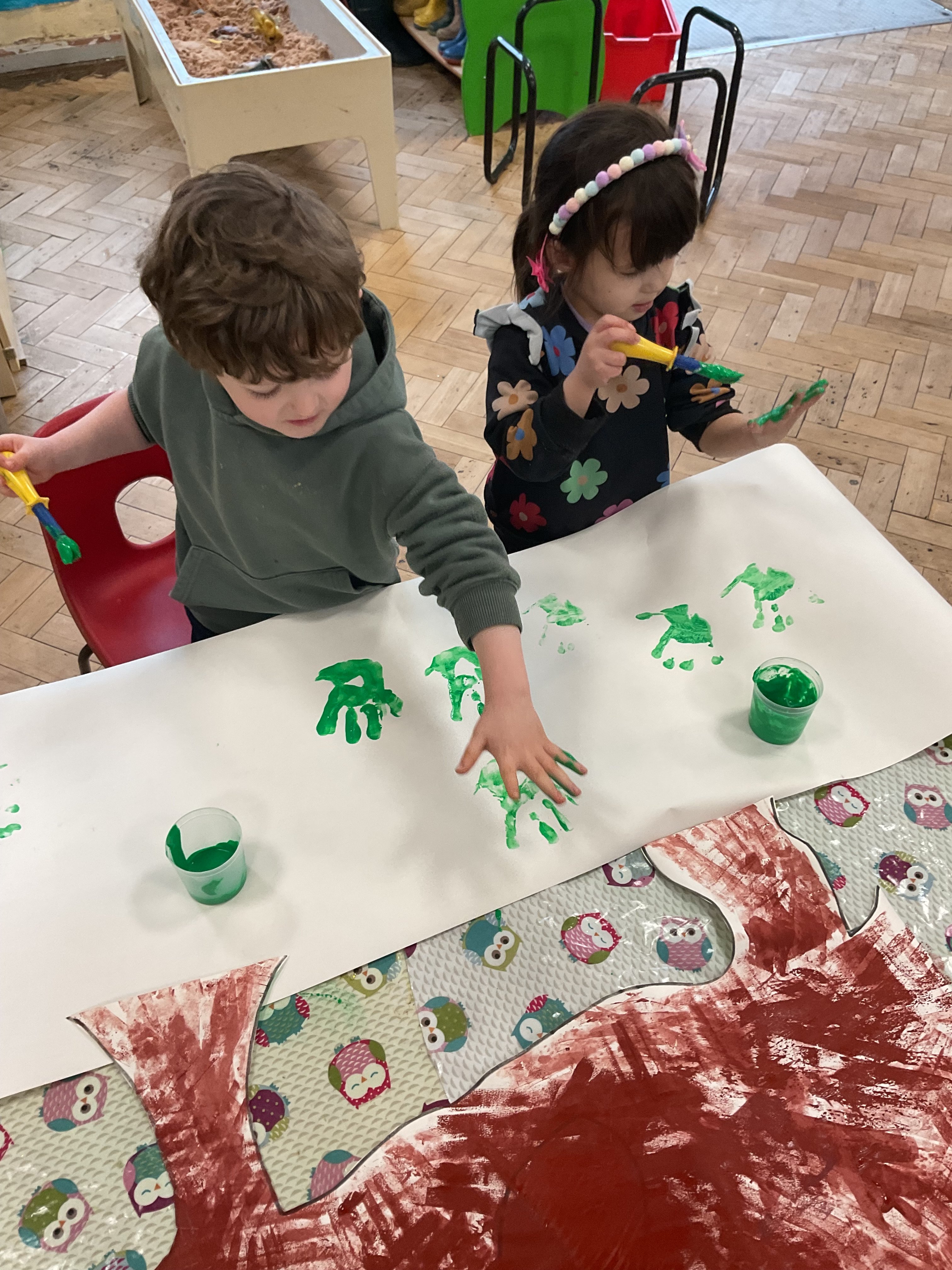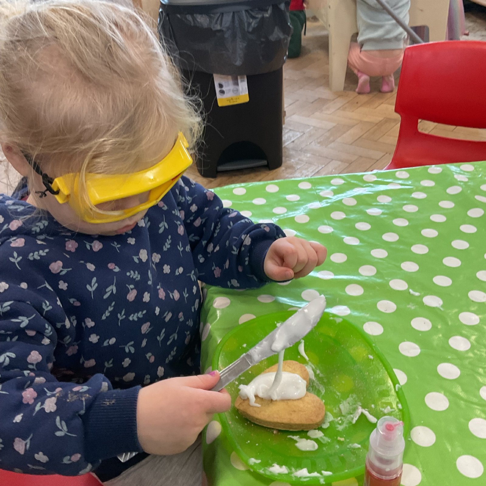 There was a sensory activity in the water tray using oranges and lemons to explore our senses of touch and smell. We have been practising our fine motor skills by using scissor skills cutting out shapes also using tweezers and scope grabbers to pick up pom pom's. We had a fun in a winter tuff tray learning what animals live in cold climates while Mrs Deacon read us a story. Outside learning children where turn taking and sharing putting balls through a basketball hop, building a bug house and sharing knowledge what wild animals eat. We celebrate RSPB big garden birdwatch, where we learned about what kind of birds visit our nursery garden the children did some grate mark making by ticking of the birds we seen on our checklist chart. We did a spot off cooking where children made chocolate rice cake bird nests with Mrs Symons the children had a great understanding that when we had to warm up a bar of chocolate for it will melt to make it easy for us to mix in the rice crispy's. We did lost of expressive art and design activities where we made bird masks using different coloured feathers, we also did Owl baby's where we use different tolls and materials to get the perfect texture for our pictures. As our topic is winter we talked about what birds like cold weather. We also did great size comparing when we used different size heart shape to make a penguins. The children had great fun making our bird feeders we mixed lard and bird seeds together the push the mixture into the moulds and piped the in the fridge too hard. We took a walk done to the school woodland area where the children chosen a perfect tree to hang the feeder. We sat very quietly in the outdoor classroom to watch the birds visit the woods.
