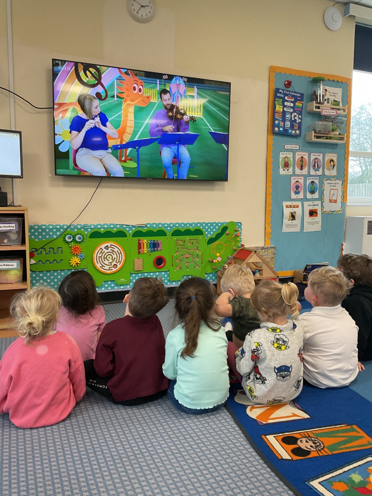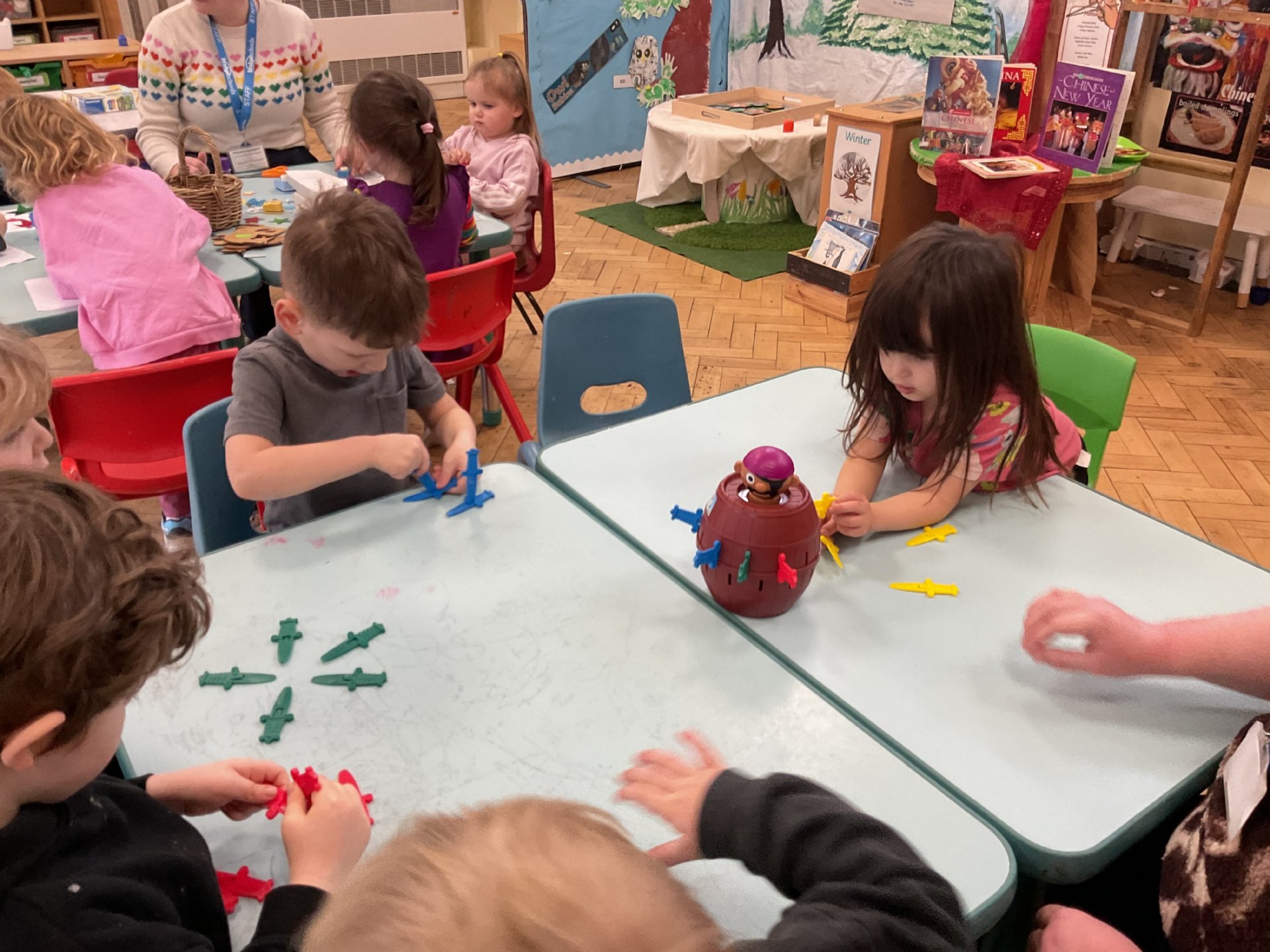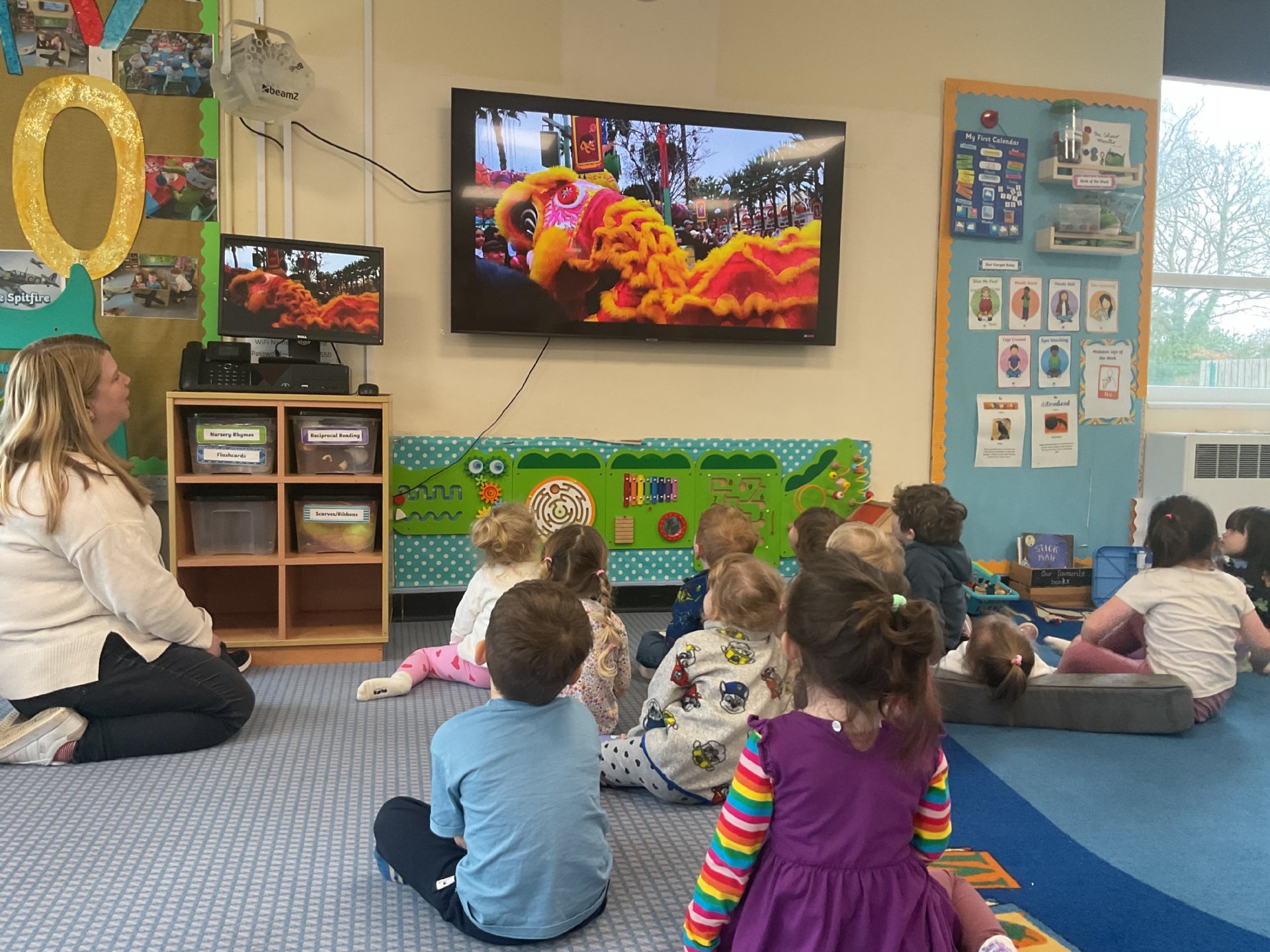 We had great fun outside on the school field finding lots of muddy puddles to jump in and chasing bubbles, trying to pop them! We also burnt up of a lot of energy climbing on the outdoor climbing apparatus. As February is the month of celebration we learnt all about the Chinese New Year where we had a Chinese restaurant role-play. We watched the BBC philharmonic orchestra programme on CBeebies about The Signs of the Zodiac listening to the songs and music.