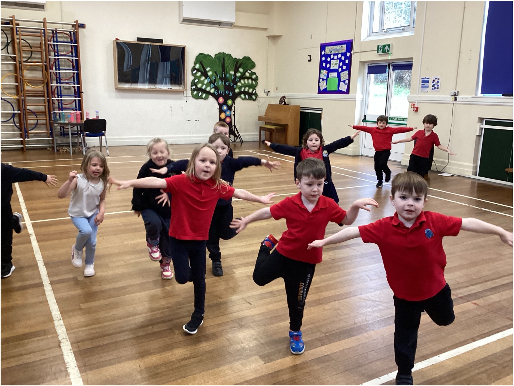 In PE we've been practising finding our own space using the spot markers. We've also practised moving in lots of different ways, such as sidestepping, crawling, jogging and skipping, taking care to avoid bumping into anyone or anything. We've learnt how to make some gymnastic shapes with our bodies. Some of these included the straddle, pike, arch and dish. We've also been practising how to balance on various parts of our body.