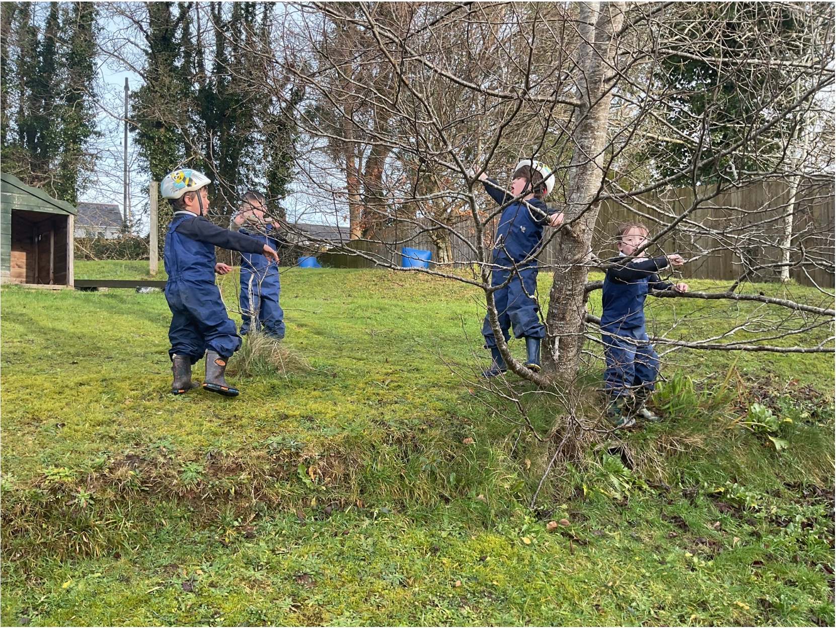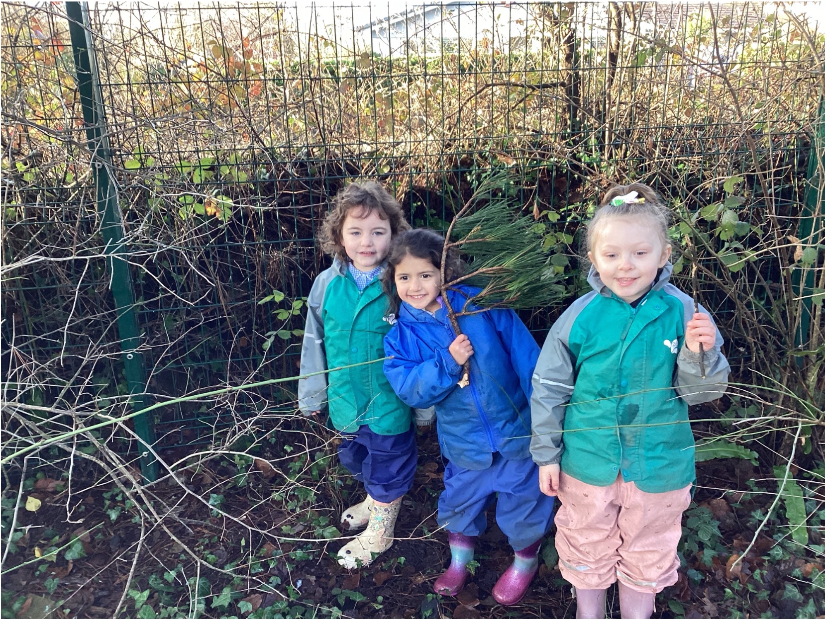 During forest school sessions we've learnt how to carry sticks and branches safely. We've played imaginative games, hunted for bugs and built dens together.