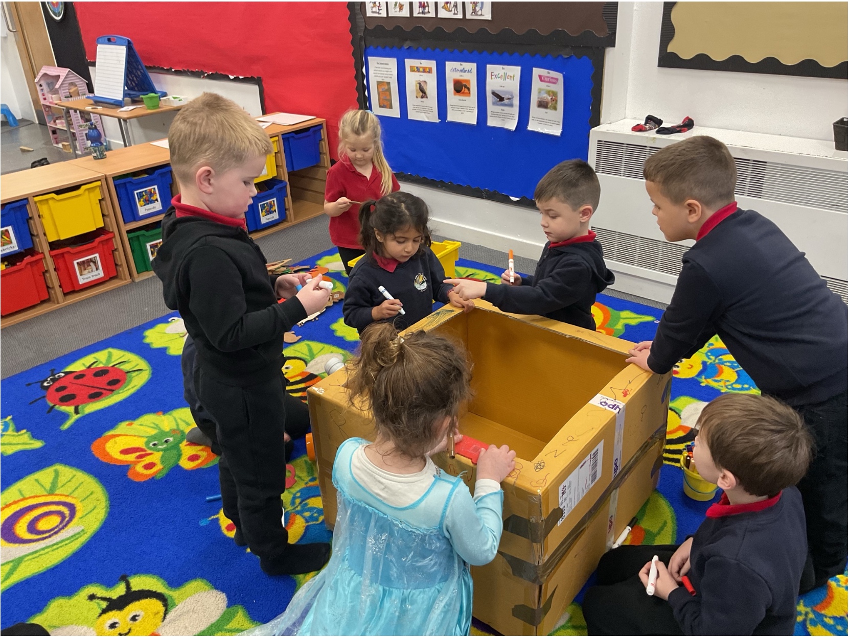 A big focus this month has been on the importance of listening to each other and working together. We worked with partners to complete various activities. These included building tall towers with bricks and working together to create a picture of a monster. We filmed the children whilst they completed these and then watched some clips from the videos. We discussed the different behaviour that we could see. We also looked at children's facial expressions and talked about how we thought they were feeling and why. We discussed any changes we could make to ensure that in the future everyone is listened to and that their ideas are valued. We then tried completing some activities with partners again. After each activity we talked about how we felt and whether our partner was listening to us and letting us take part in the activity. The children now all recognise how we should work together with a partner and have had many opportunities to do this. They are all developing the listening, negotiation and communication skills in order to do this successfully.