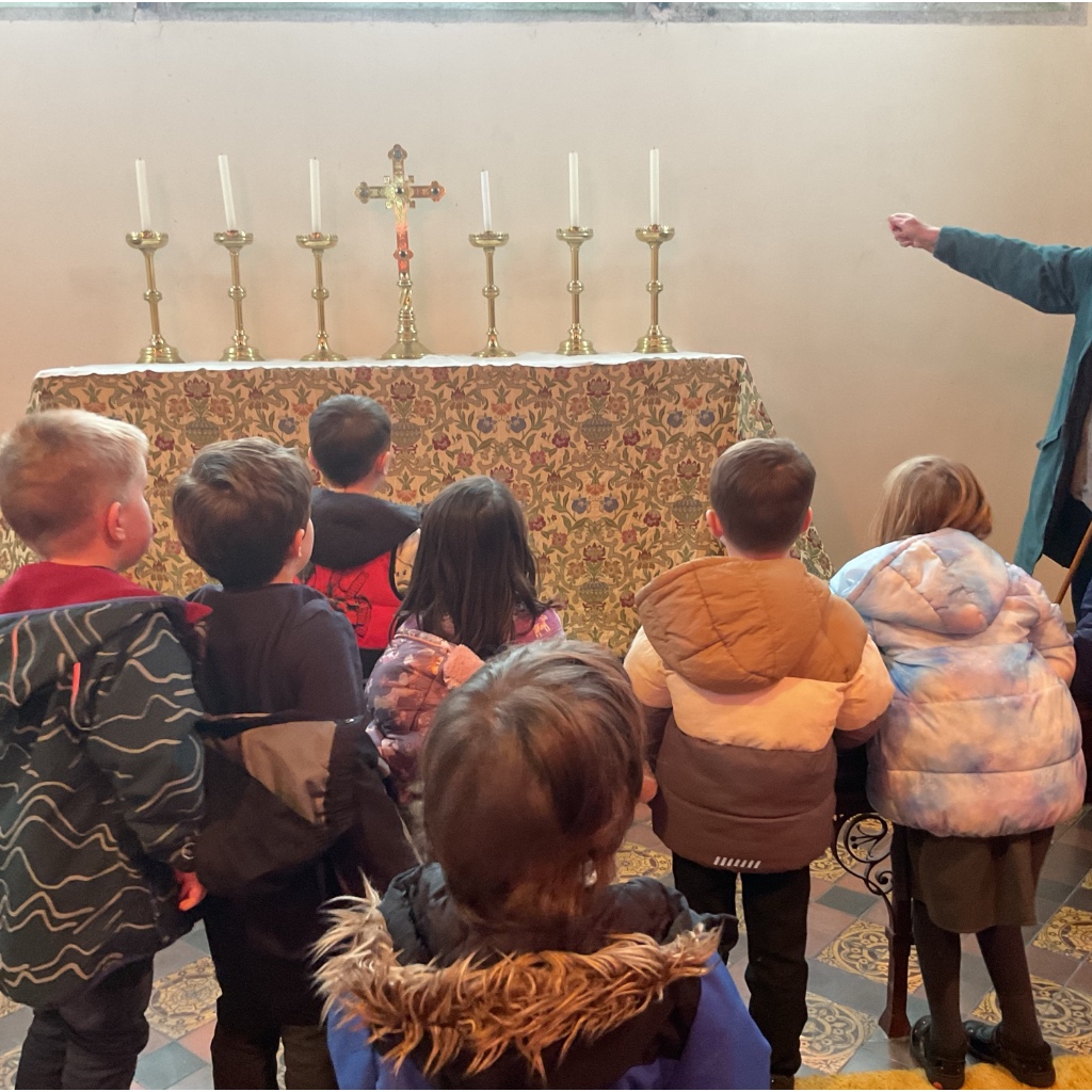 In RE we talked about places that are special to us and why they are special. We talked about the fact that churches are special places for Christians. We looked at some photographs of churches and some of the objects found inside them. We also watched a short video showing some of the features of a church. We then visited our local church and drew some of the features.
