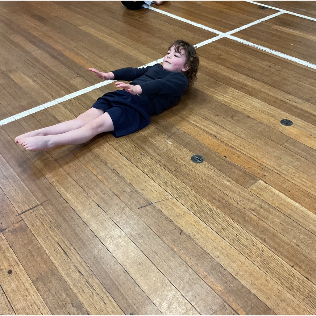 In PE we've been learning to make various shapes with our bodies. We've been focusing on keeping stable with straight arms and legs and while pointing our toes. We've also been learning to balance on various parts of our bodies.