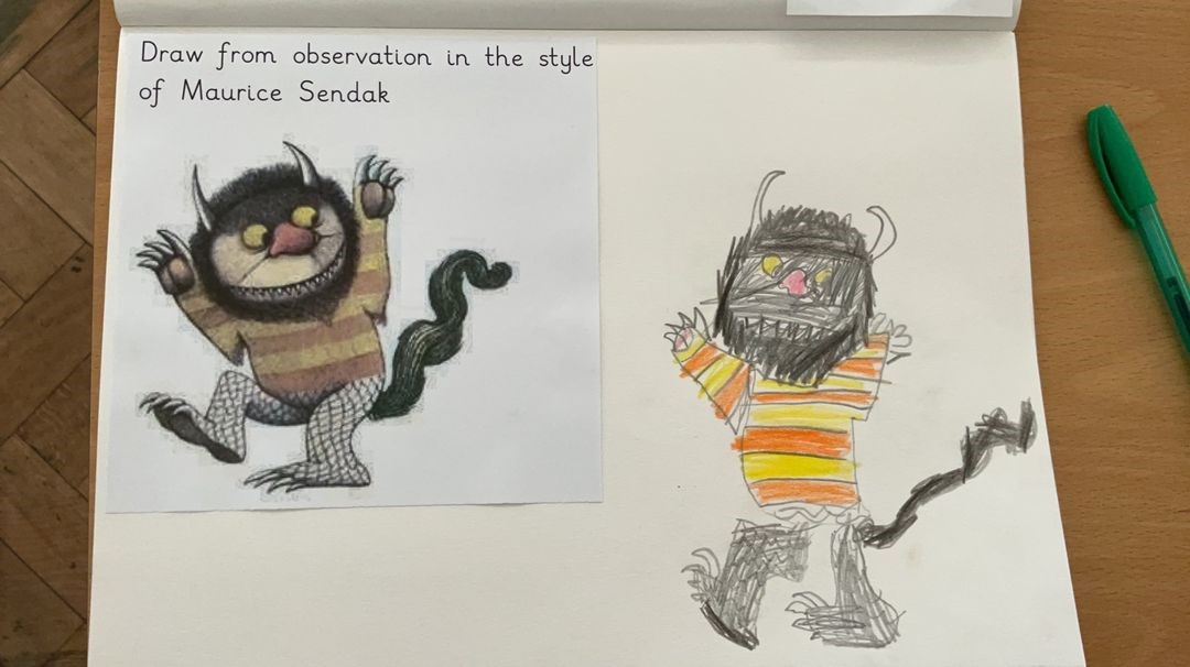 Our RE this half term is all about the Christian Creation story. In Art we have begun to explore the techniques used by Maurice Sendak. Maurice Sendak wrote and illustrated the famous children's book 'Where the wild things are'.